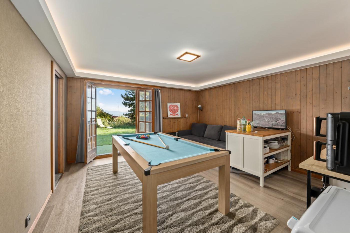 Chalet Calin - Business & Familles is a recently renovated apartment in Arzier,guests can make the most of its garden and barbecue facilities. The property has mountain and lake views, and is 32 km from PalExpo. There is a sun terrace and guests can make use of free WiFi, free private parking and an electric vehicle charging station.
