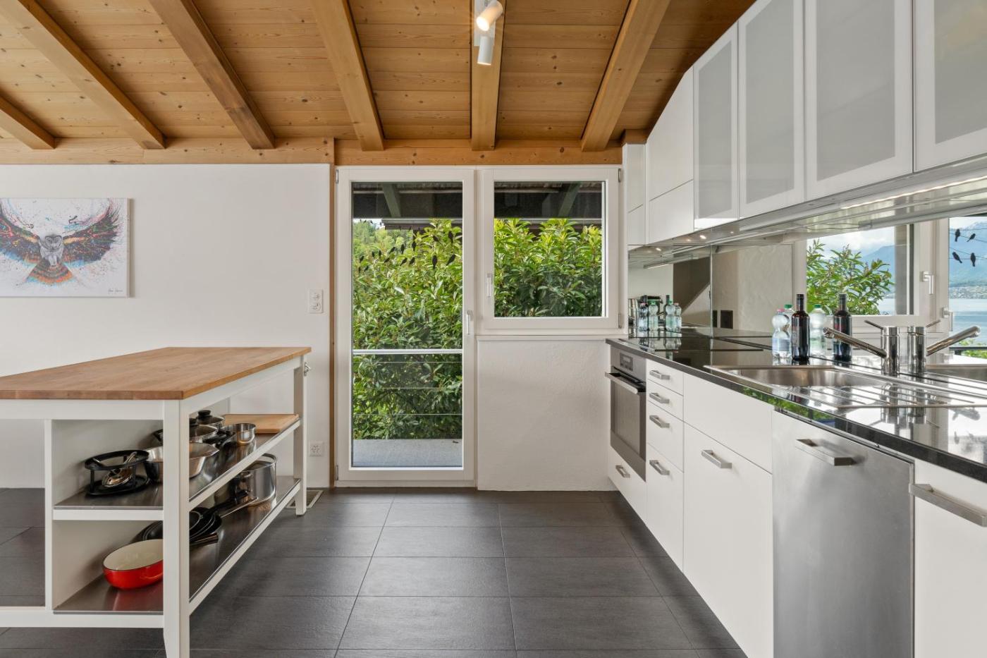 Three-Bedroom Apartment. The fireplace is a top feature of this apartment. Boasting a private entrance, this spacious apartment also includes 1 living room, 1 separate bedroom and 1 bathroom with a shower. In the kitchen, guests will find a stovetop, a refrigerator, a dishwasher and an oven. The unit has a washing machine, lake views, a terrace and winechampagne is offered for guests. The unit has 2 beds and 1 futon.
