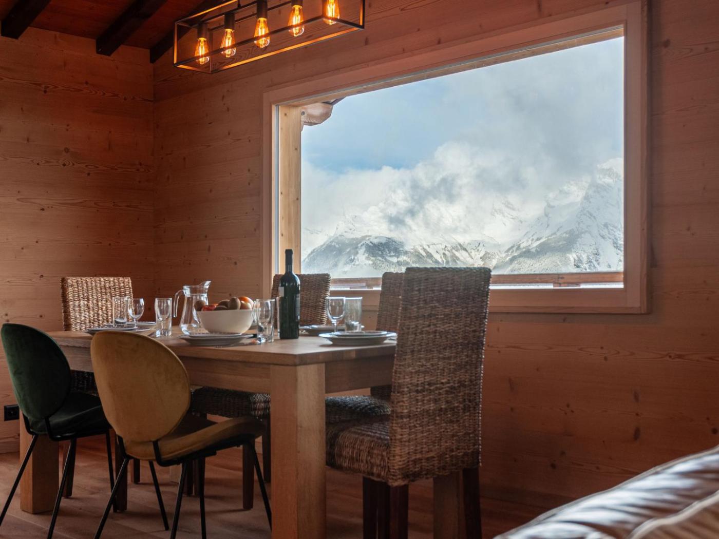 Chalet. This chalet features a fireplace. This spacious chalet features 3 bedrooms, kitchen, a terrace and 1 bathroom with a shower. Guests can make meals in the kitchen that has a stovetop, a refrigerator, a dishwasher and kitchenware. The chalet features a washing machine, a coffee machine, a dining area as well as a balcony with mountain views. The unit has 3 beds.