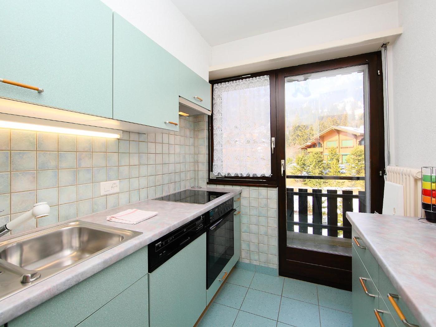 Apartment. "Marignac 33", 3-room apartment on 4th floor, south facing position, practical and nice furnishings: livingdining room with open fireplace, dining corner and satellite-TV. Exit to the balcony, south-east facing position. 1 double bedroom, without wardrobe with 2 beds. 1 room with 1 x 2 bunk beds, 1 double bed. Exit to the balcony. Small kitchen (oven, dishwasher, ceramic glass hob). Exit to the balcony, north-west facing position. Bath-room, sep. WC. Balcony, south-east facing position, small balcony, north-west facing position. Nice view of the mountains and the ski-run. Please note: non-smokers only.