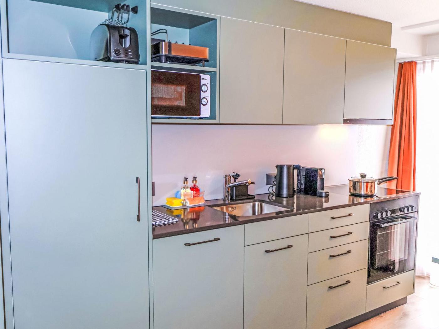 Apartment. This apartment comes with 1 living room, 1 separate bedroom and 1 bathroom with a shower and a hairdryer. In the kitchen, guests will find a stovetop, a refrigerator, a dishwasher and kitchenware. Boasting a balcony with mountain views, this apartment also features a coffee machine and a TV. The unit has 2 beds.